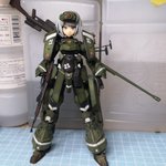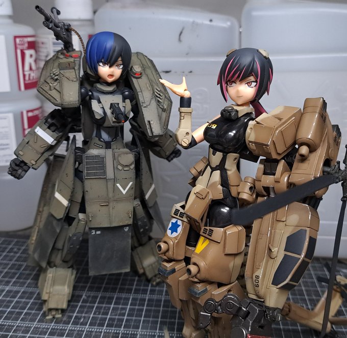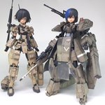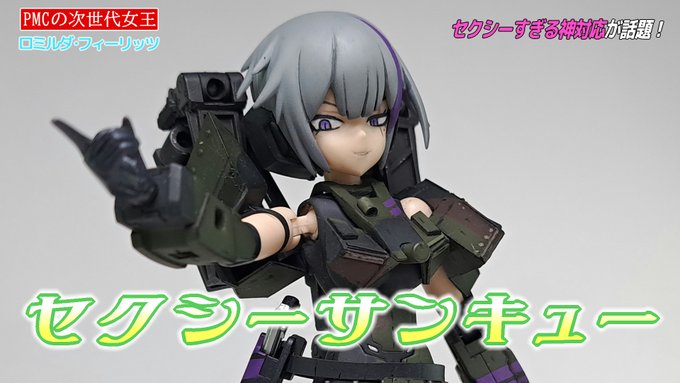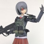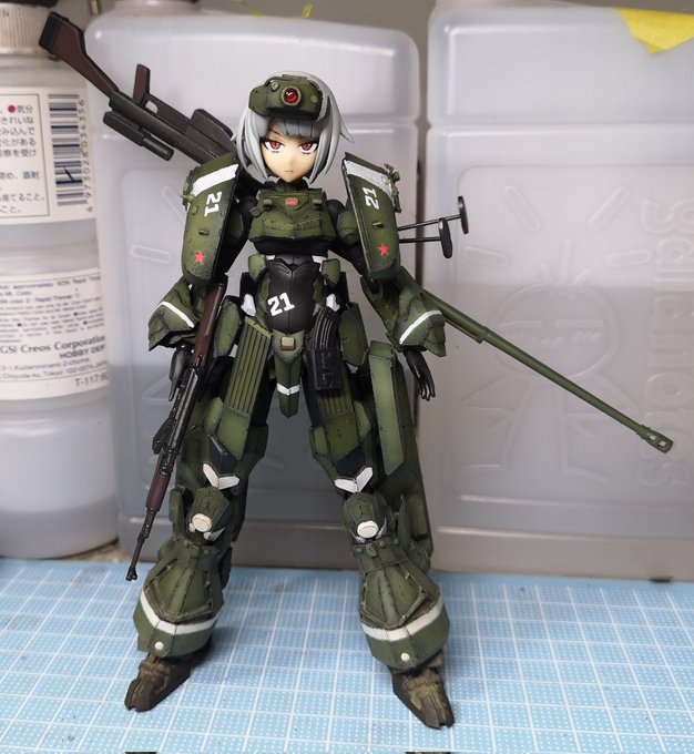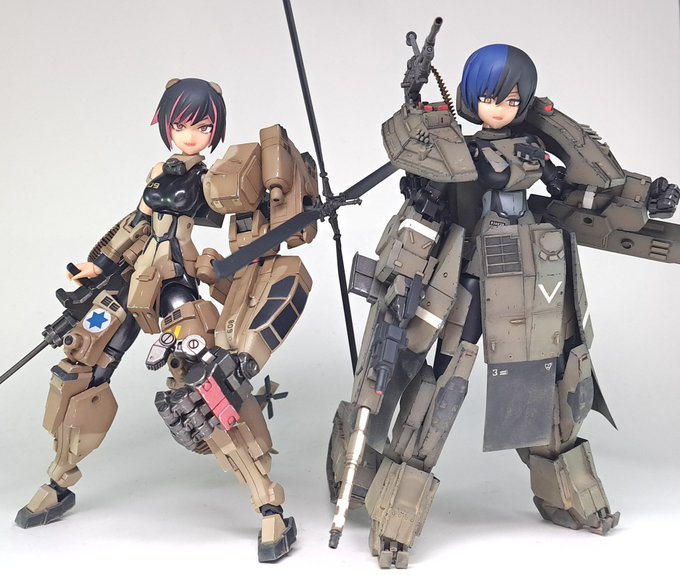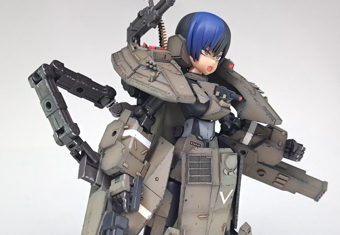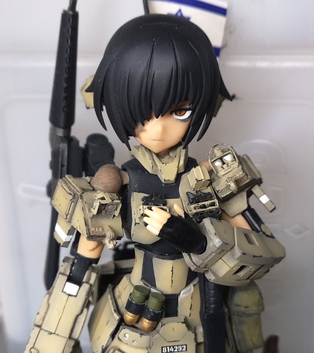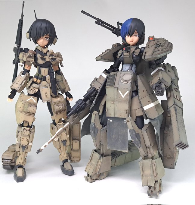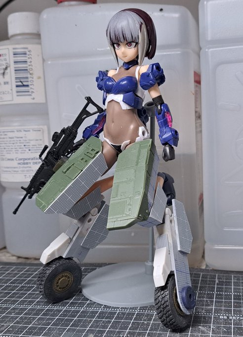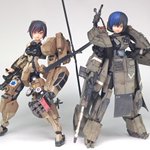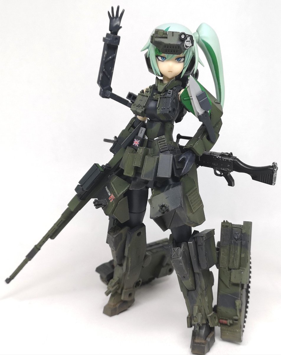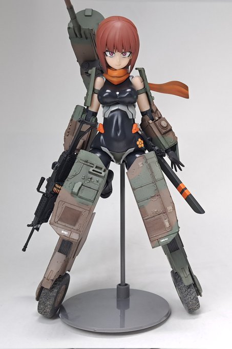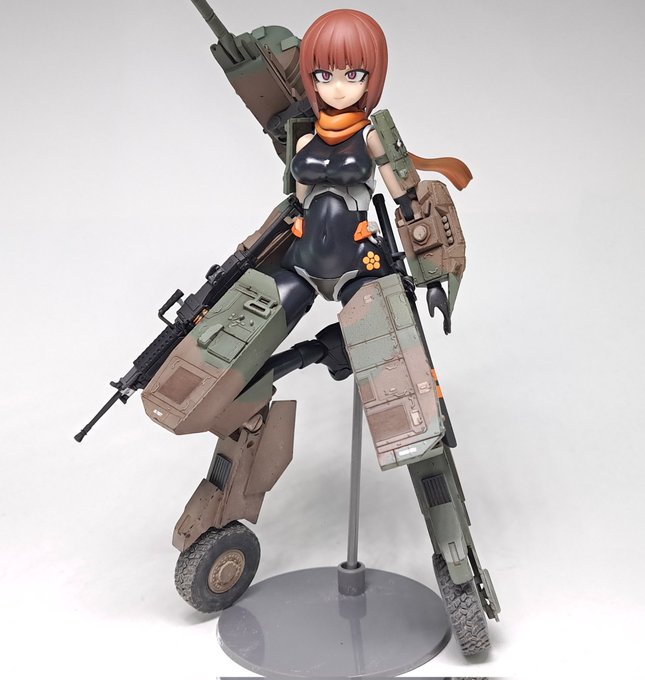 FA:G 16式機動戦闘車「香取 ナオ」完成! 「タイヤ足で爆走する忍者メカ娘」をテーマにアヤツキと1/72と1/48の16式機動戦闘車をミキシングした作品です。 戦車より軽装甲な装輪装甲車モチーフということで装甲部分は少なめ、ついでに身体はむちむちに改造してみました。 #フレームアームズ・ガール