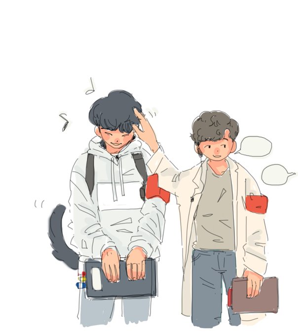 誉めてくれ~😆 よしよし 👥👥👥"시마상네 강아지인가봐" 수근수근 #MIU404イラスト企画 #miu404