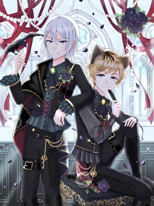 #twst_ゴスロリ企画 りんでぃちゃんの素敵企画🥰 NRCのカラスを盛り込みたくて、動物に好かれる⚔くんと動物言語学の得意な🍩くんで参加しました! 上記タグから皆様の素敵イラストをご堪能ください! #ツイステファンアート