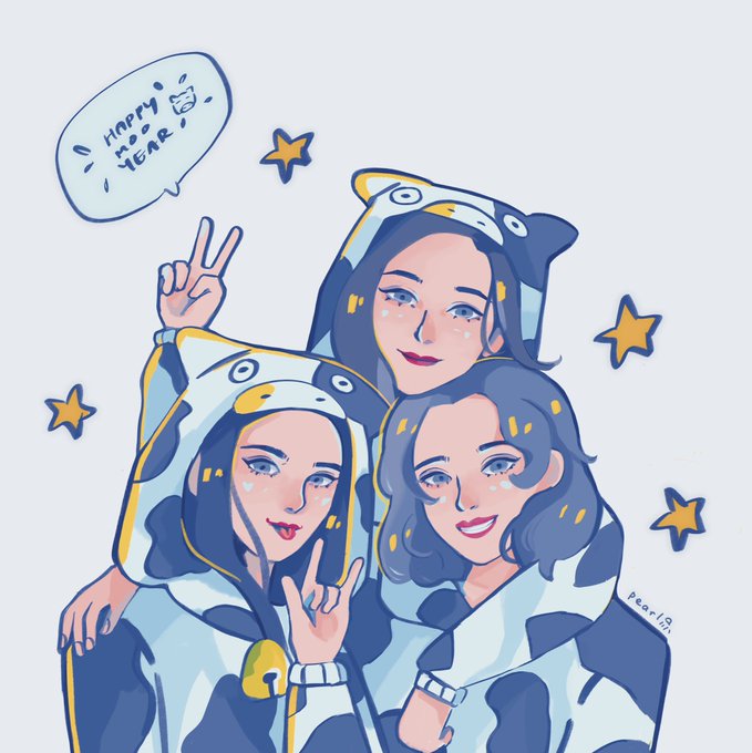 happy cow year from our 97z🐄🌟 #loonafanart #haseul #jinsoul #yves