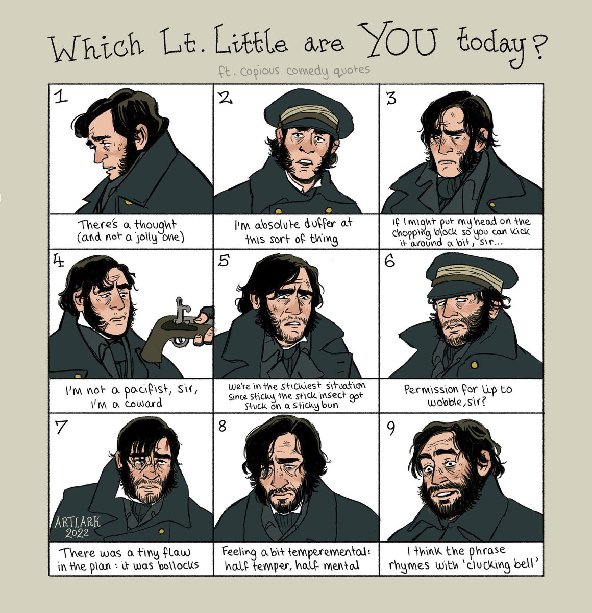 late night sketches of two lieutenants and a sergeant, helpfully ordered from most-least likely to agree to mutiny #TheTerror