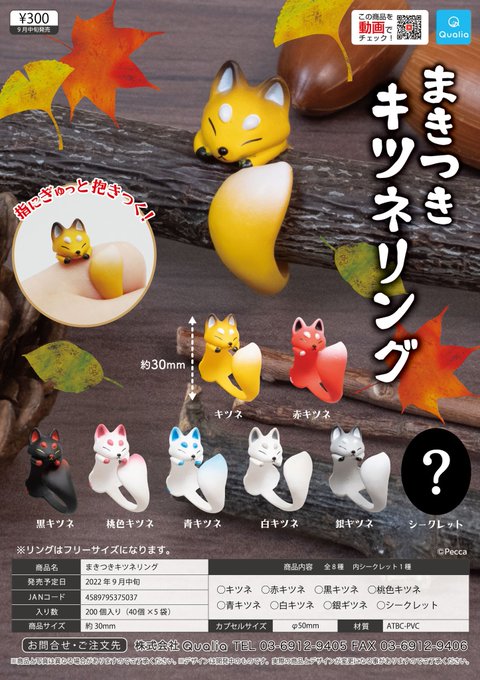 指にぎゅっと抱きつく可愛いキツネちゃん達のカプセルトイ「まきつきキツネリング」2022年9月18日より販売開始します! 7種類のカラフルなキツネちゃん達にシークレットもあります㊙️ 見かけた際はどうぞよろしくお願いします٩(๑^o^๑)۶ @Qualia_45_ #まきつきキツネリング