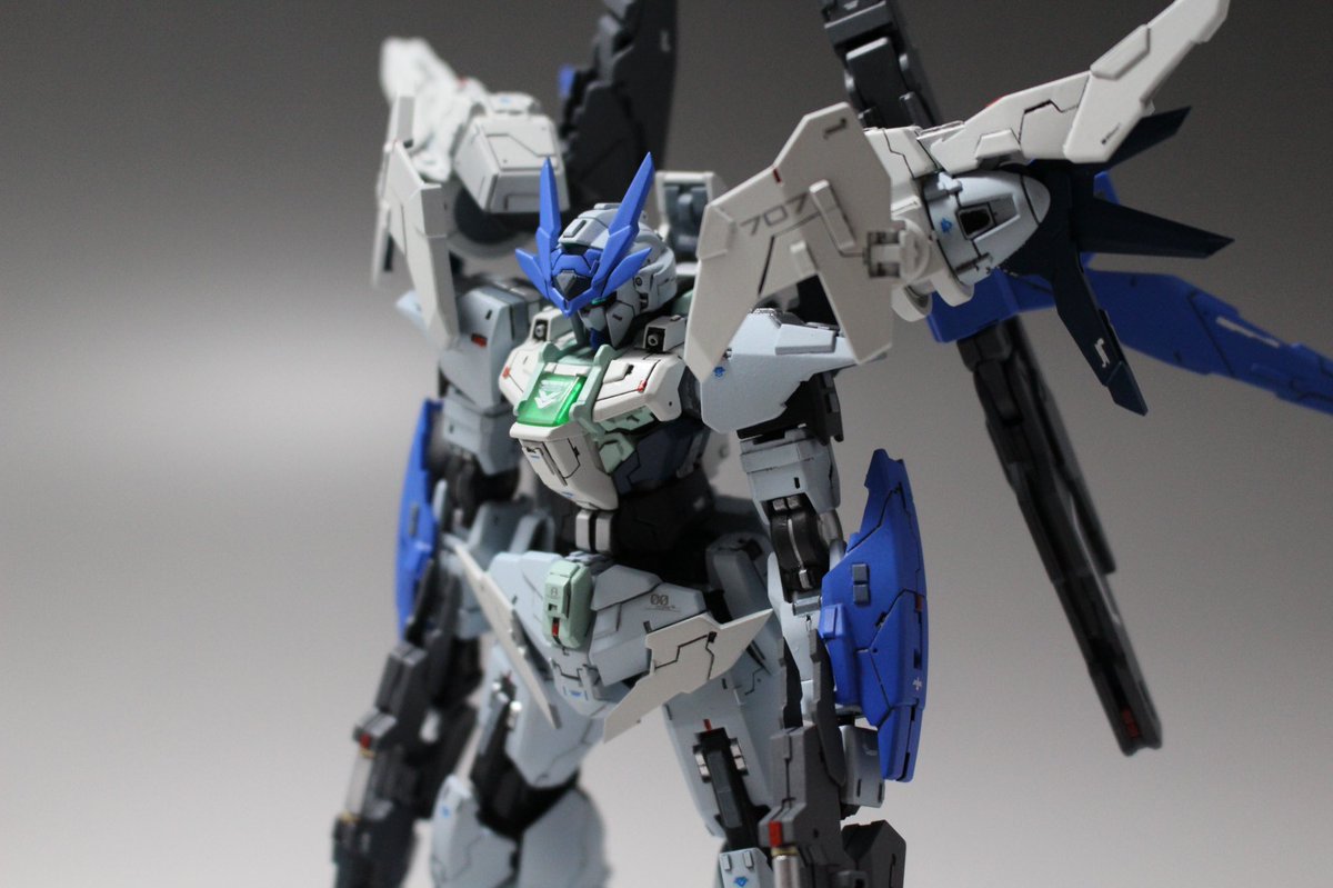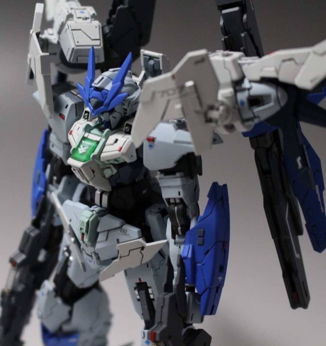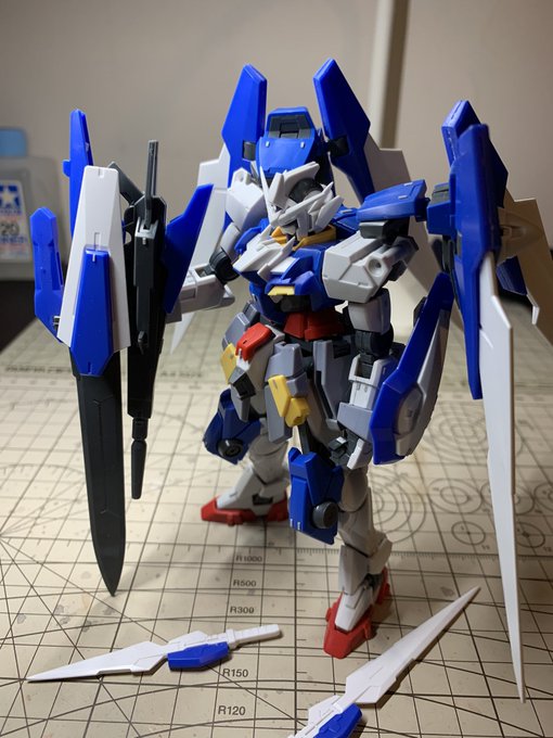 HG ダブルオースカイメビウスです😄 ディテールかなり気に入ってますが、カラーリングがもうちょっと考えれば良かったかな😅 できれば沢山の方に見てほしい。 #自分は好きだけど伸びなかった作品