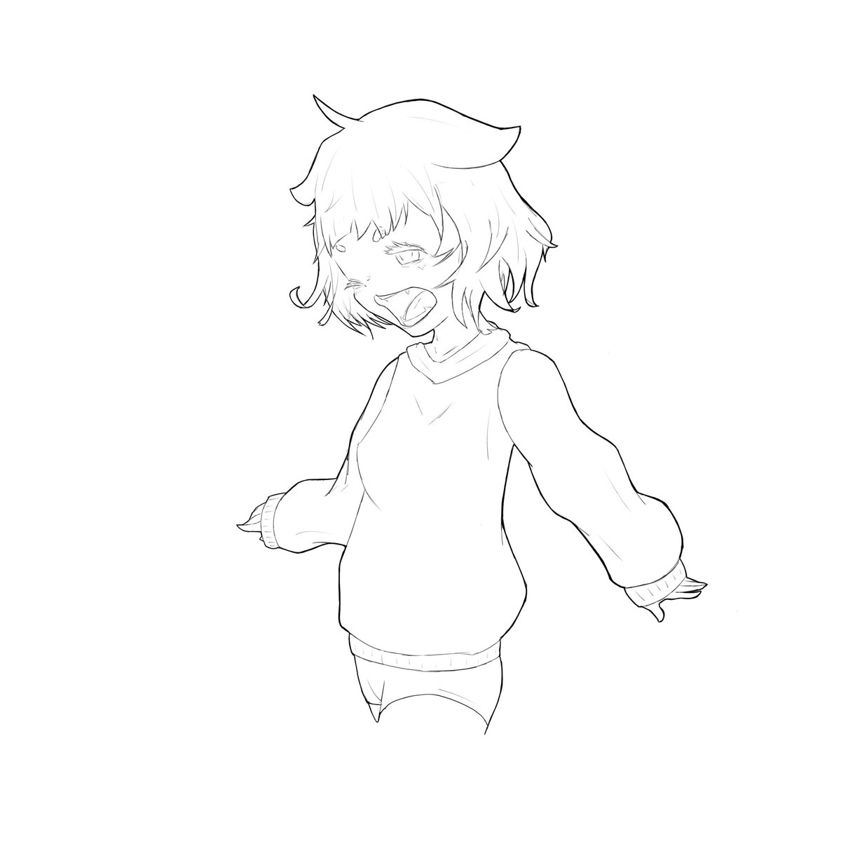 本体線画完了(1時間) #イラスト #イラスト練習 #イラスト好きさんと繋がりたい