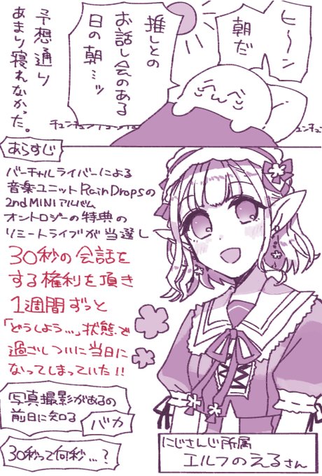 192 1072 大好きなVtuberさんとお話しした記録🖊 テンパるオタクにも終始優しくて圧倒的感謝…!!! (RainDropsオントロジー特典のリミートライブのレポです) #えるの絵だよ #絵インドロップス 21/01/28 18:56