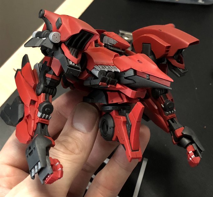完成しました。 コトブキヤACVIより、アナザーセラフです。 バックパックと脚を大型化と延長。あとは削り込みと表面処理を中心に設定画のセラフらしい鋭い形にしてます。 塗装は筆塗り。 アナザー仕様でまた蘇るトラウマになれば幸いです。 peg4009.livedoor.blog/archives/18599… #ACコン2023完成