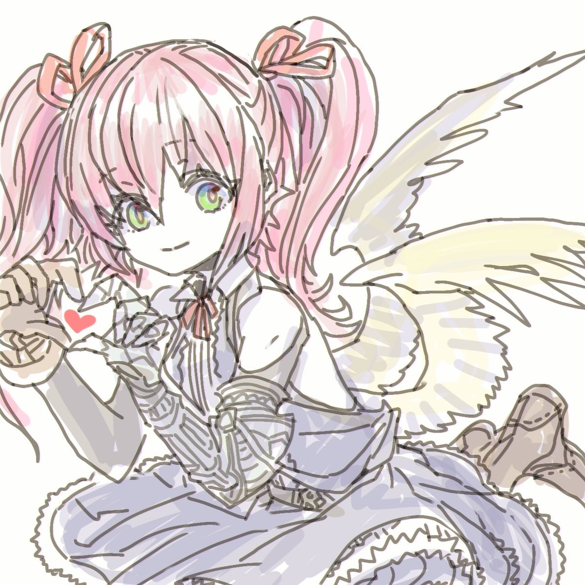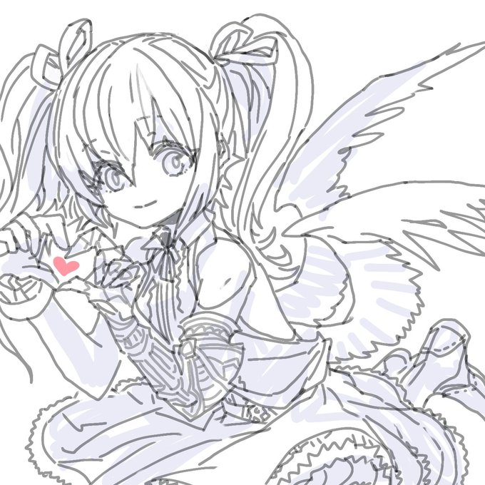 神撃のバハムートより、働き者の天使のリリエルちゃんを描きました!🤗🎶 実は色塗りも試みたのですが、難しくて泣いたのよね!😭でも、せっかくだし…そっと添えます!😉
