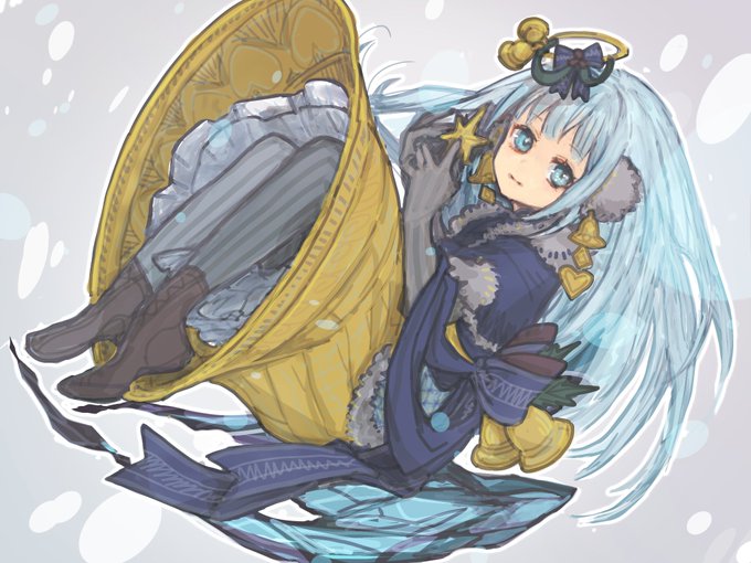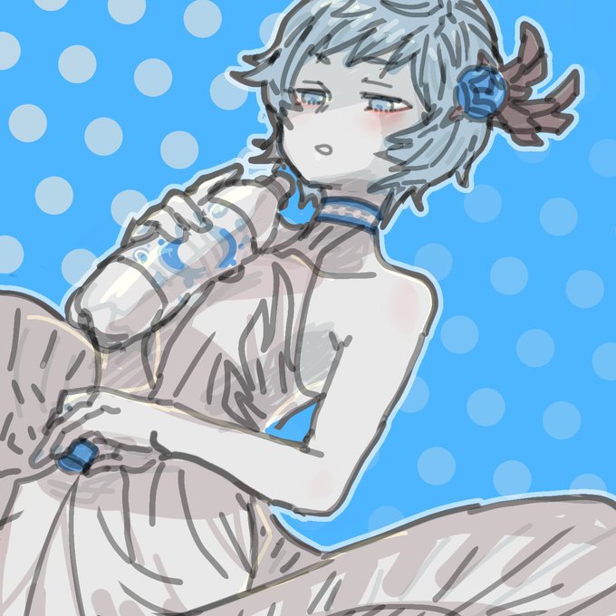 神撃のバハムートより、リリオラちゃんを描きました!🤗🎶 青色とドット模様なリリオラちゃんには、カルピスソーダを飲んでほしい…!