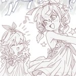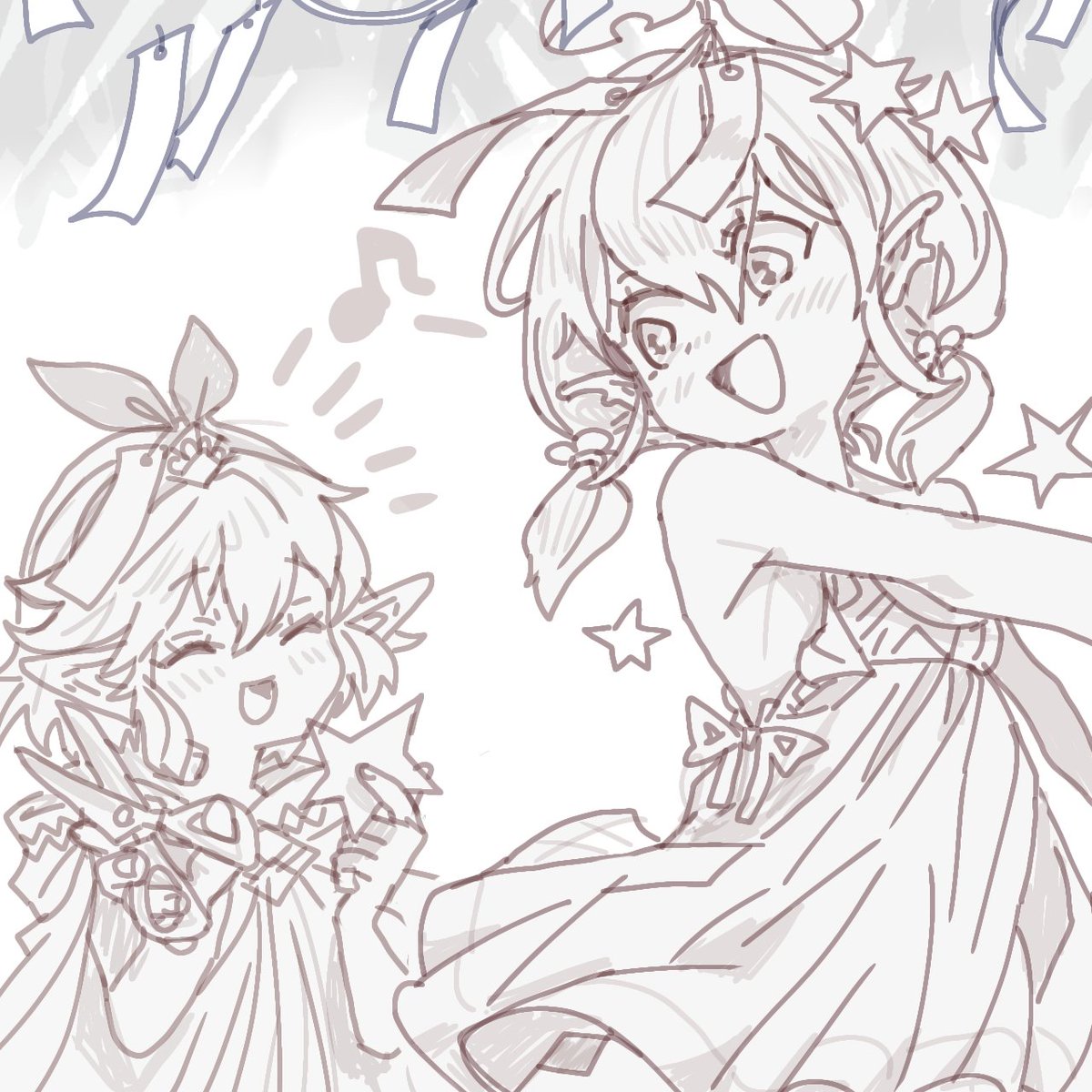( ᐛ👏)🎶 神撃のバハムートより、ユグドラシル様とリザちゃんです!先程のラフを整えました! ゲーム内で連載されている4コマ漫画があり、そこで登場したゆぐゆぐとリザちゃんがあまりにも可愛かったので、衝動的に描きました!🤭 まだセーフ、今は七夕…7月7日の26:55ですしぃ?🥺