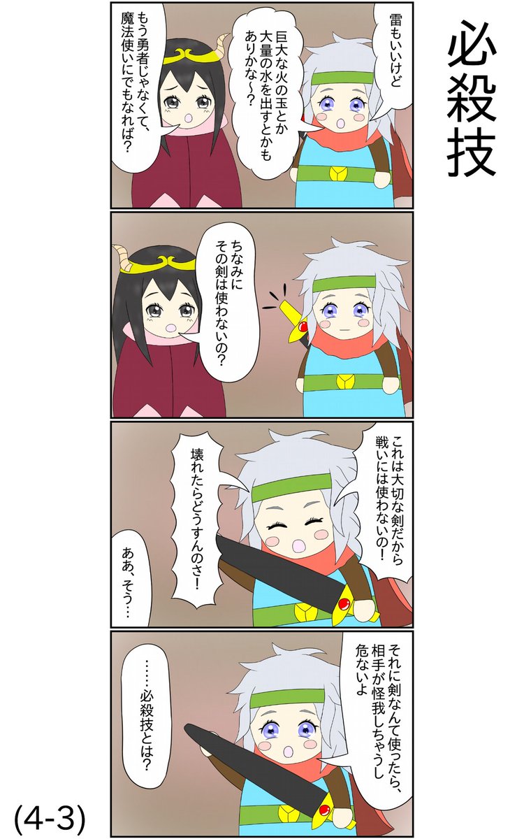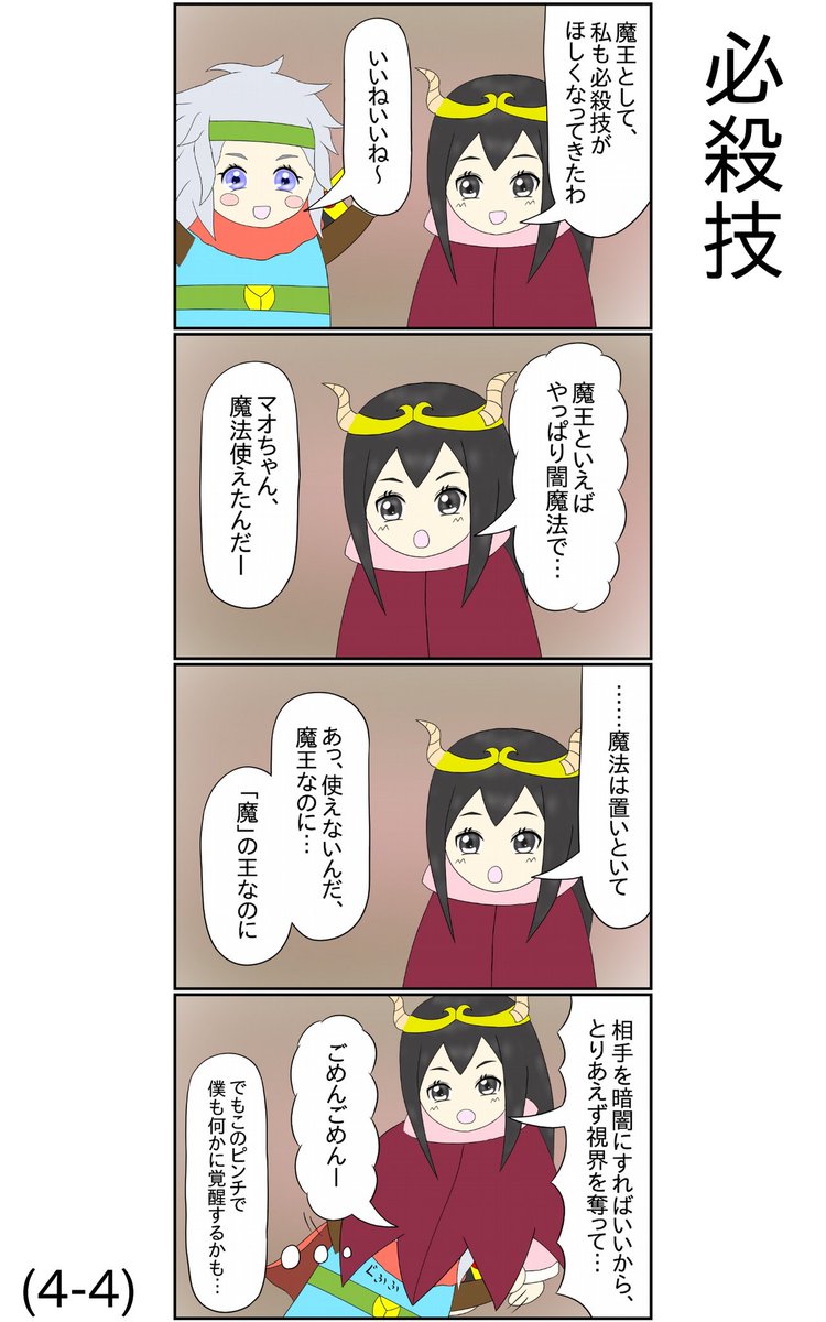 【4コマ漫画】 ユウちゃんとマオちゃん No.4-3 必殺技 #4コマ漫画 #ユウマオ #絵描きさんと繋がりたい #いいねでお迎え #漫画が読めるハッシュタグ