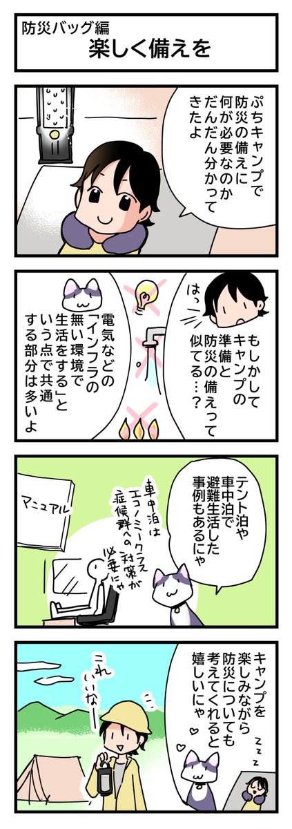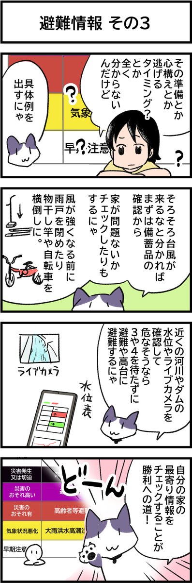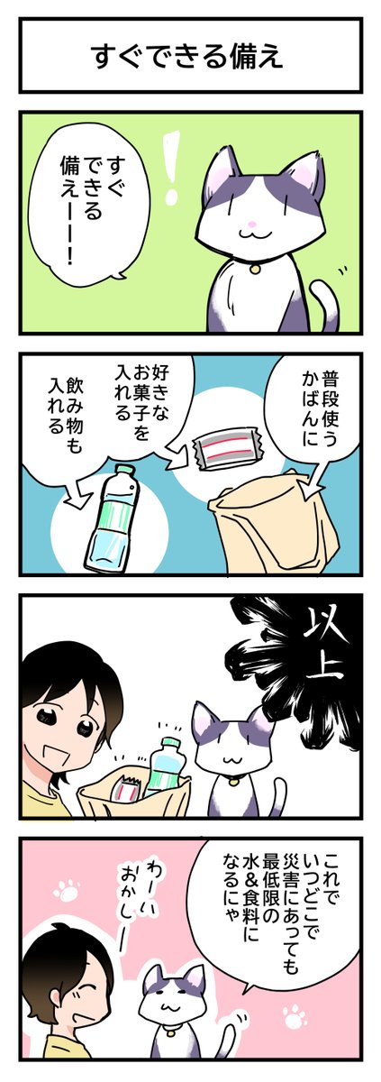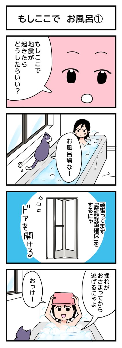 防災4コマ「もしここで」家具の固定を考える 地震にも、ねこにも有効。 #4コマ漫画 #防災マンガ #漫画が読めるハッシュタグ #いろはな防災 #地震 #家具固定 #猫漫画 irohana-bosai.com/manga/manga003…