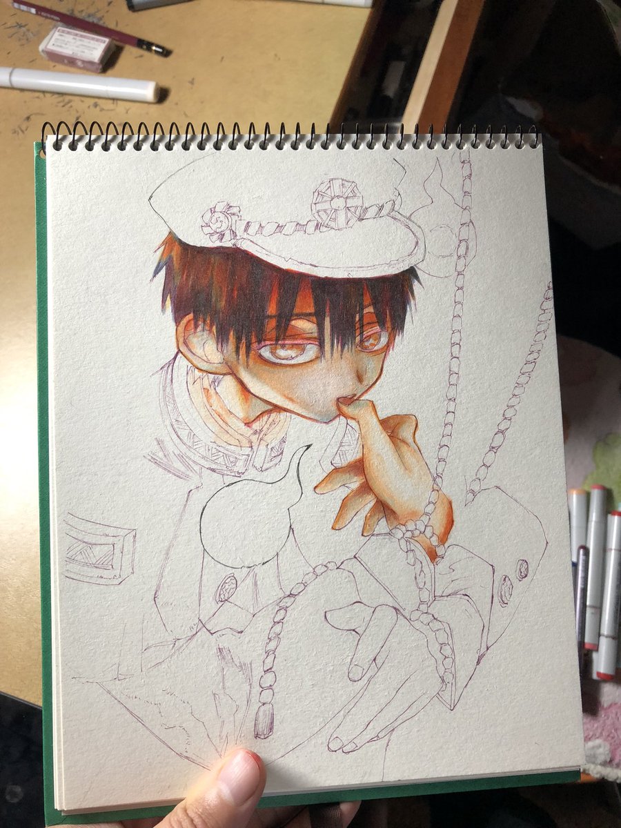 げっそりしてるようにも見える なんとかそれなりに持って行った(最初は訳分からんくなって諦めそうになった) #地縛少年花子くん #イラスト #コピック #模写 #絵描きさんと繋がりたい #模写 #drawing #copic #illustration #artwork #manga #イラスト好きさんと繋がりたい