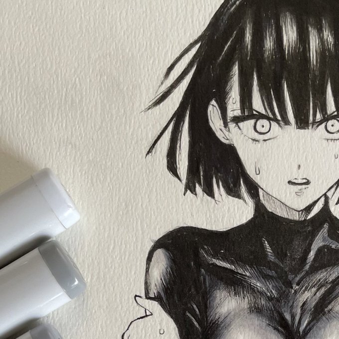 【ワンパンマン】フブキの下書きにペン 入れしてベタ塗ったら引き締まった ちょっとグラデージョンを加えました 【メイキング】 ↓ youtube.com/shorts/rK5wgDm… #YouTube #OnePunchMan #ワンパンマン #絵描きさんと繋がりたい #模写 #drawing #フブキ