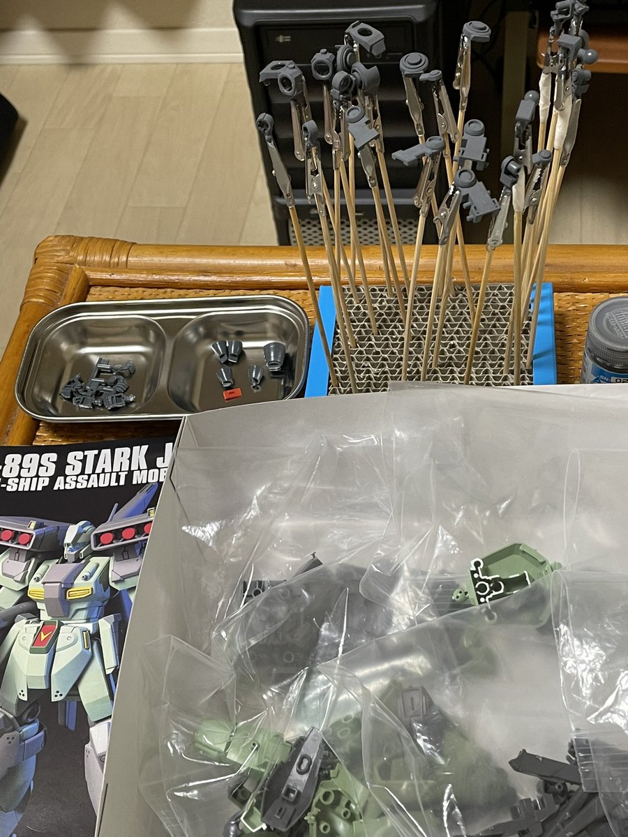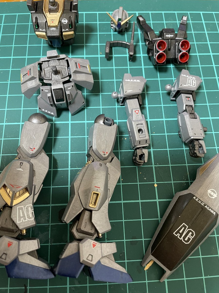 ハイザック筆塗装中。 マジックリンで塗り分け気持ちいい☺️ けど、黒鉄と焼鉄じゃ目立たない😂 ただの自己満足だな。 #ガンプラ #ガンプラ好きと繋がりたい #ガンプラの画像貼るとRTされると聞いて
