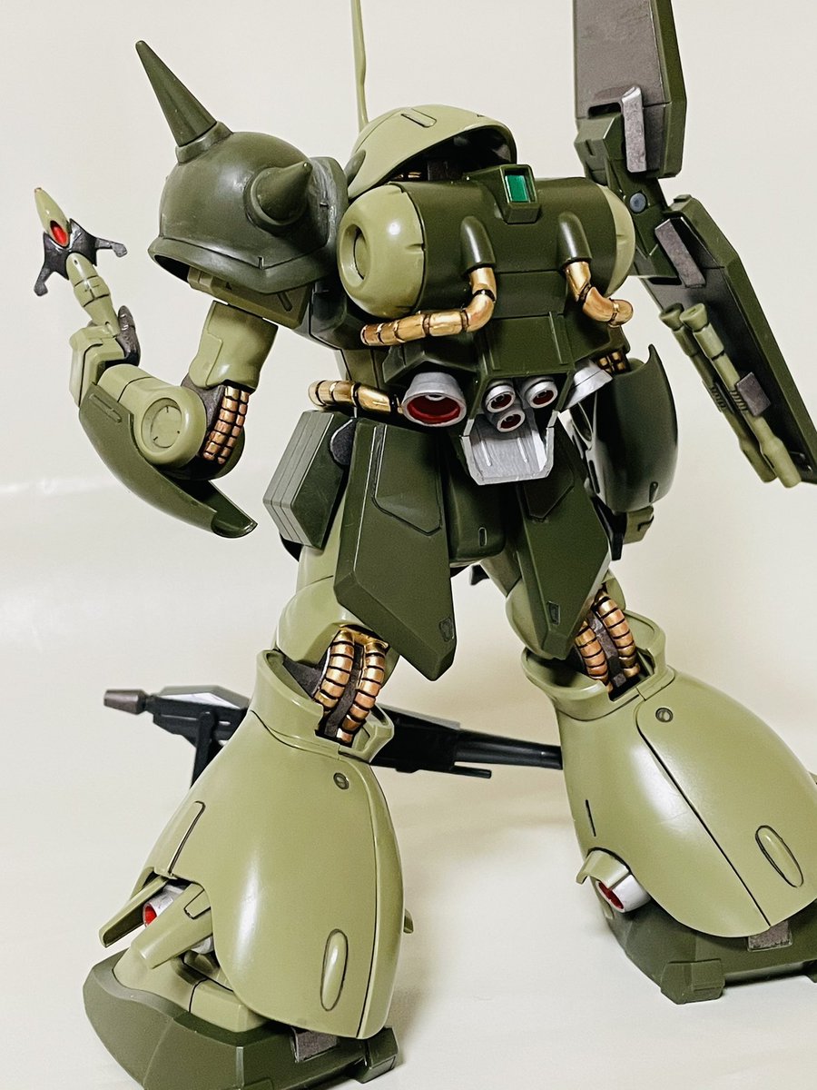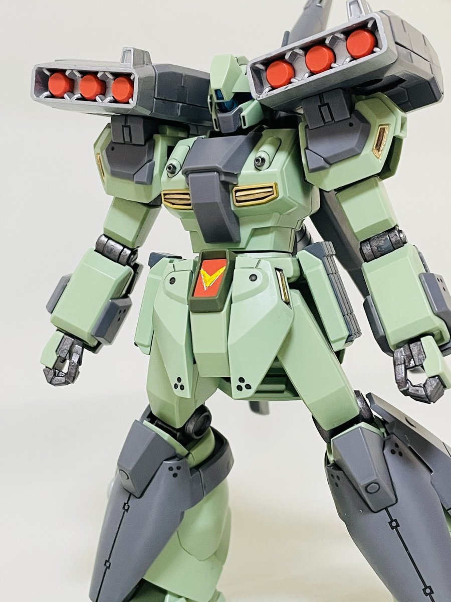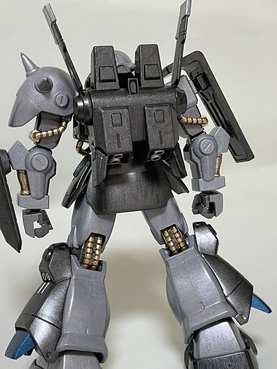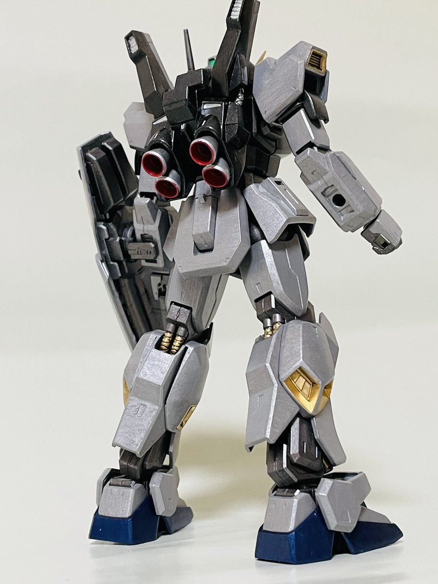 HGハイザック、仕上げ直前。 筆塗装ビフォーアフター。 #ガンプラ #ガンプラ好きと繋がりたい #ガンプラの画像貼るとRTされると聞いて コックピットハッチも、ブルーの差し色すれば良かったかも😅