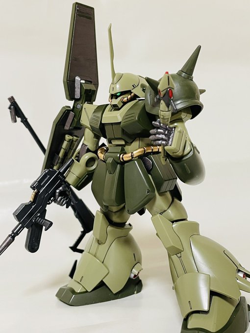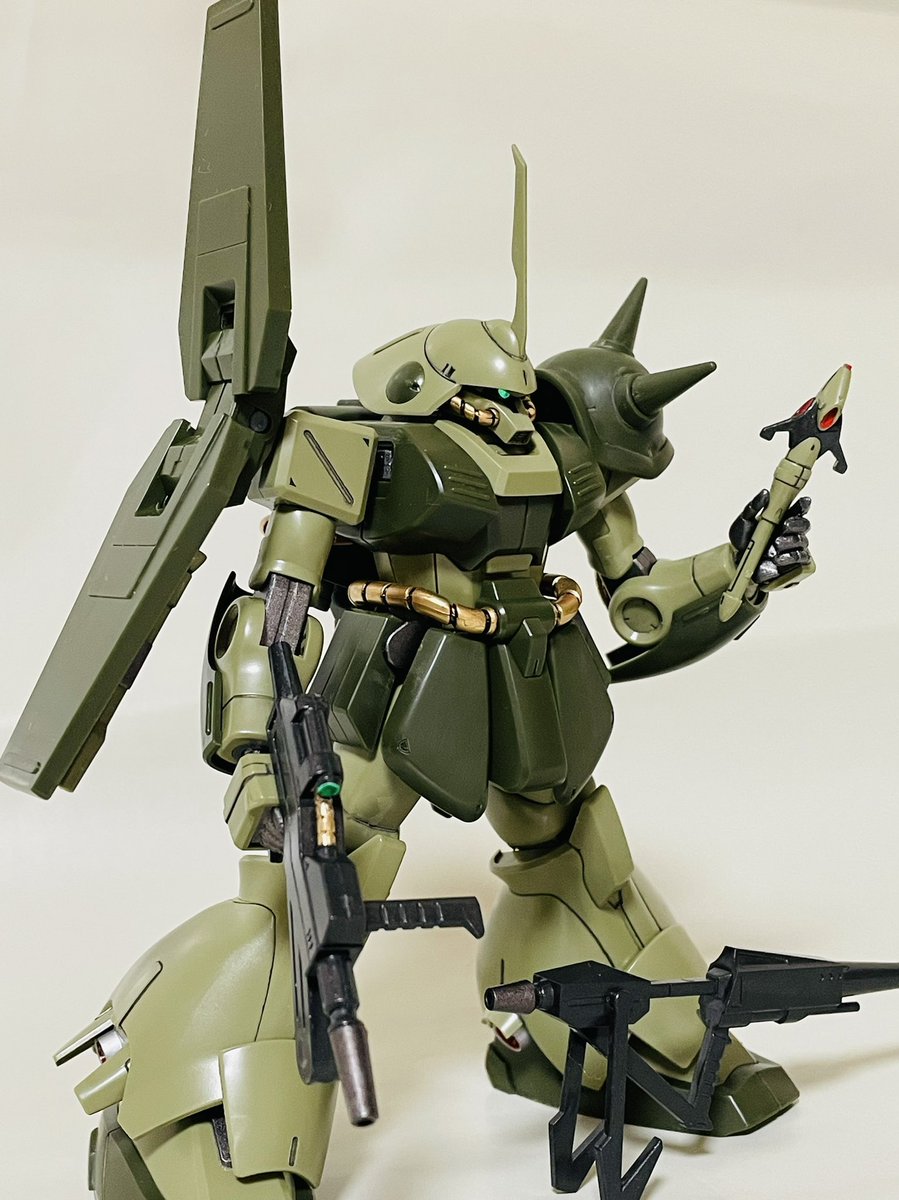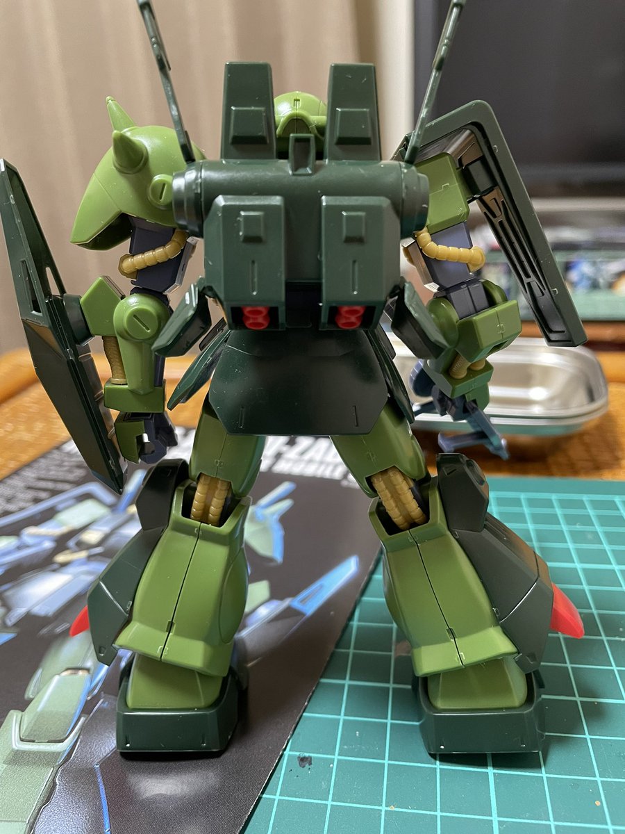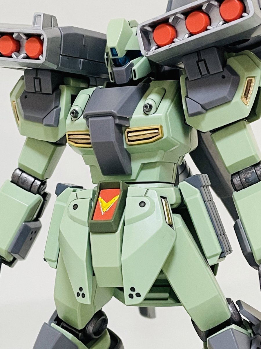 HGハイザック、仕上げ直前。 筆塗装ビフォーアフター。 #ガンプラ #ガンプラ好きと繋がりたい #ガンプラの画像貼るとRTされると聞いて コックピットハッチも、ブルーの差し色すれば良かったかも😅