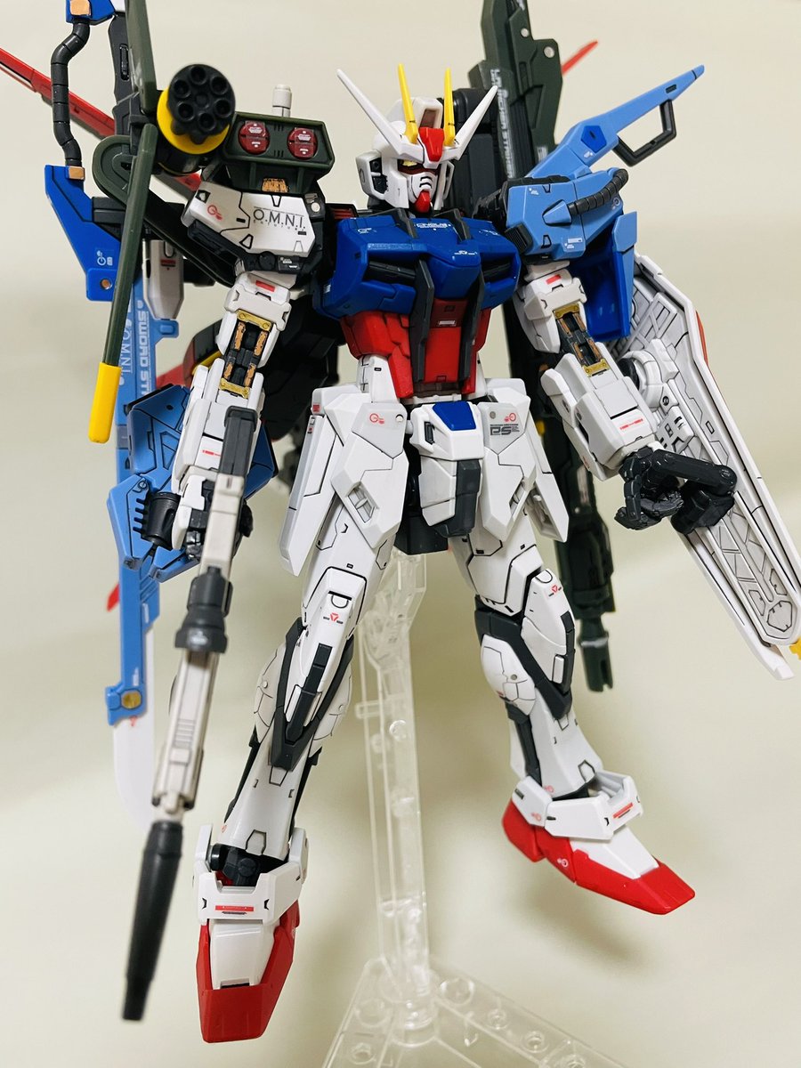 RGパーフェクトストライク このゴテゴテ感がたまらん😄 RGは無塗装、スミ入れ、つや消しだけでも綺麗で満足感あるね✨ けど、細かくて目がつらい😂 #ガンプラ #ガンプラ好きと繋がりたい #ガンプラの画像貼るとRTされると聞いて