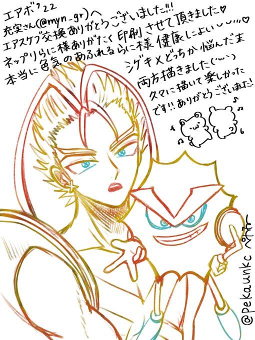 1 8 充実さんへ(@myn_gr ) エアスケブ交換ありがとうございました😊💖 大変お待たせしました!シゲキX描くの楽しかったです❤️ 22/03/08 23:29