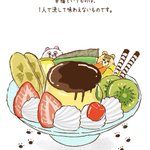プリンアラモードたべたいなぁ✨ #ねこ #cat #りす #動物 #ゆるキャラ #かわいい #かわいい #かわいい #もこもこ #ぬいぐるみ #キャラクター #イラスト #四コママンガ #art #Illust #名言