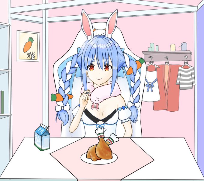 4 13 今週はうさだぺこらさんを描きました。 チキンを食べる前のぺこーら。 #ぺこらーと 22/12/18 23:59