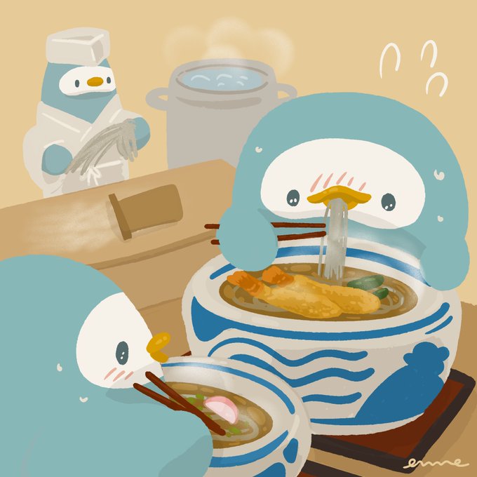 はふっはふっ んまんま年越しそば🍜 来年もいい年になるとええなあ #イラスト #ゆるい絵