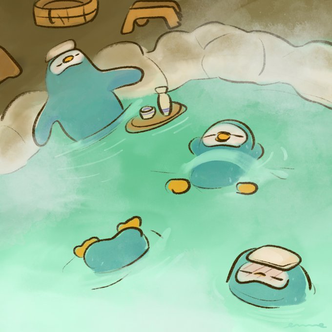 2 24 もこもこ泡🫧ペンちゃん みんなで行く銭湯ってなんでこんな楽しいんかなあ♨ #イラスト #ゆるい絵 22/12/26 12:00