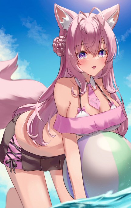 キツネと水浴び #フブキ絵 #ホロライブ