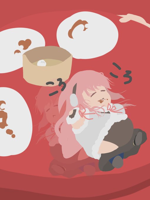 食べすぎちゃって 動けなくってェ… #もこ田ワンドロ展覧会