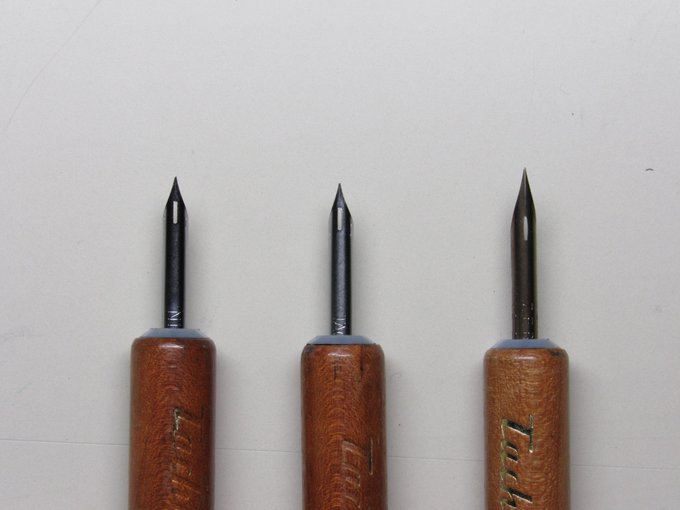 ペン画の用具「付けペン」です インクをペン先に付けて使います 上から ・Gペン ・かぶらペン ・丸ペン ・スクールペン ・日本字ペン です · #ペン画丸 #ペン画 #イラスト #ブログ #スケッチ #絵描きさんと繫がりたい #ブログ仲間と繋がりたい
