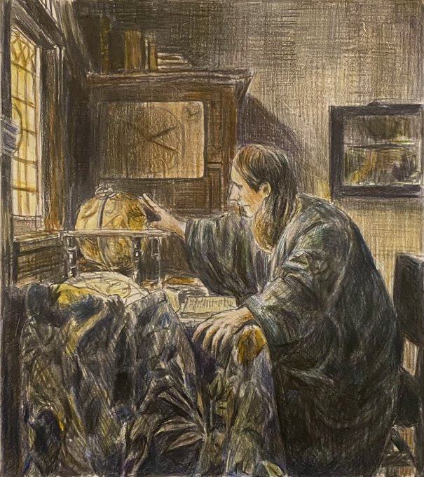 フェルメール「天文学者」 #模写 #絵画 #色鉛筆