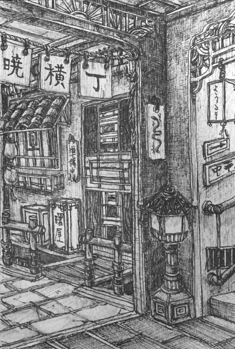 0 2 暁横丁 #ペン画 #イラスト 23/05/03 20:41