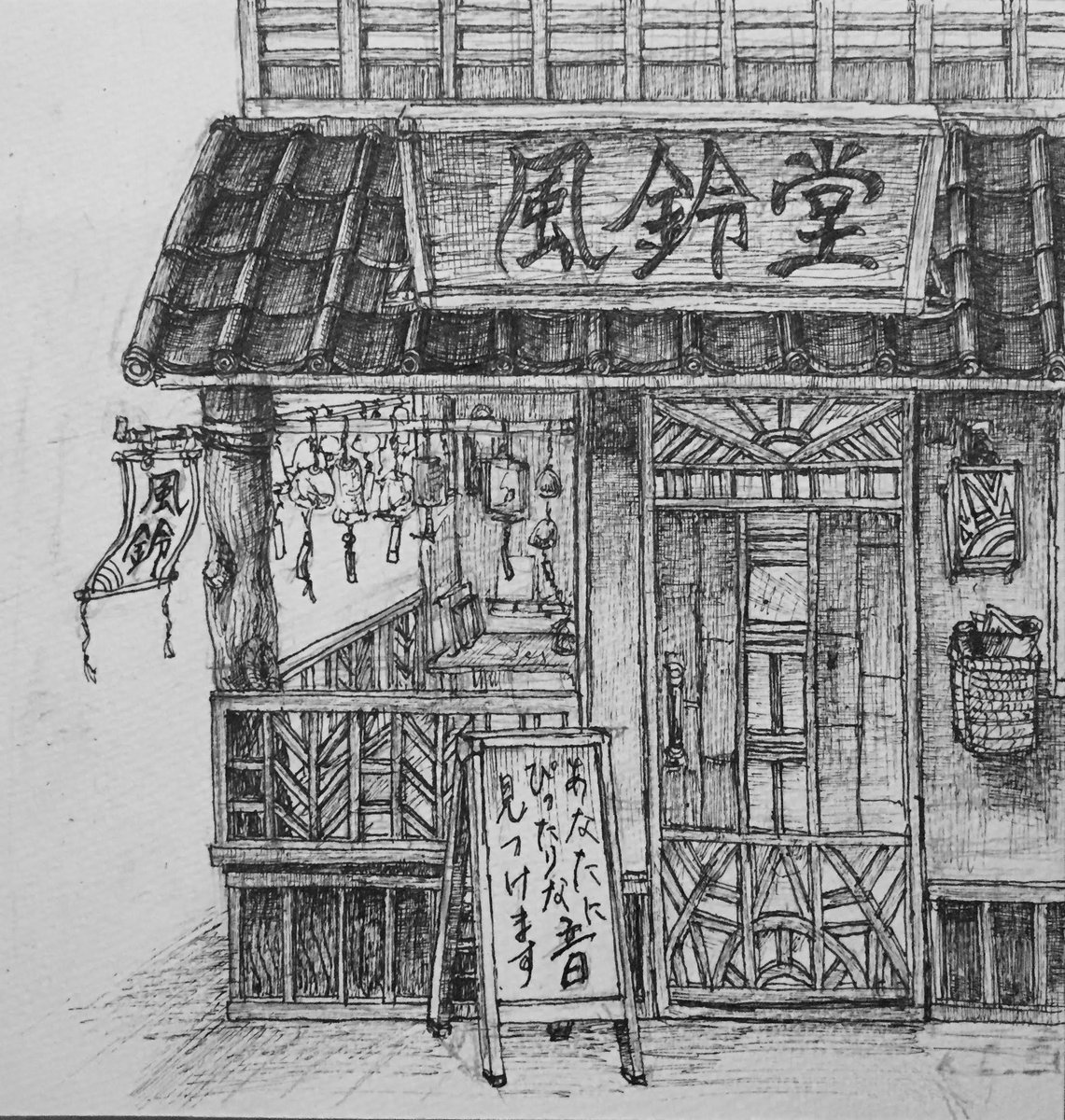 風鈴堂…… #ペン画 #イラスト #三億アカウントの中から私を発掘してください