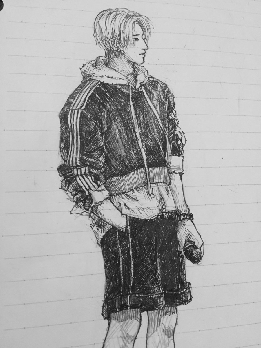 1 4 短パンだとつい足を見てしまう… #Straykidsfanart #HAN #ペン画 23/06/30 23:33