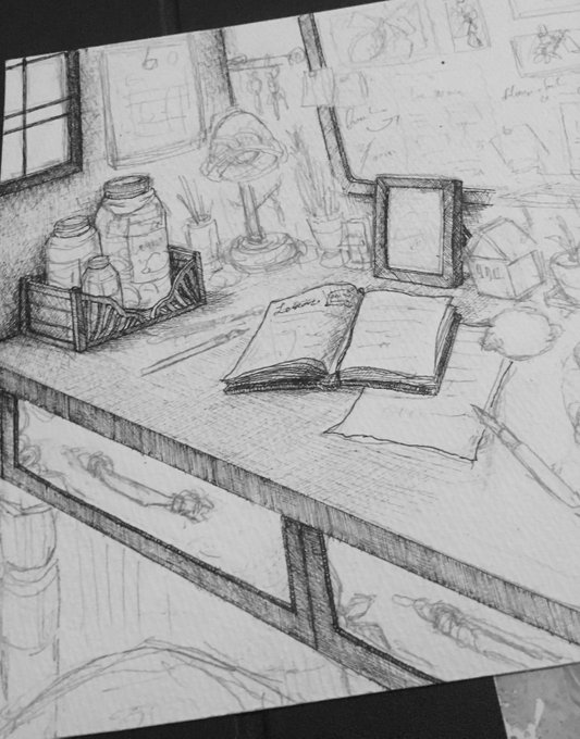 現在の状況… ドローイング10枚、平面構成、Campusのデザイン、デッサン、個人制作、テスト勉強……………_:(´ཀ`」 ∠): #ペン画 #イラスト