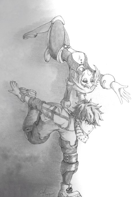 お茶出久コンビ。 OchaxDeku。 . 影作るの楽しすぎて部分的に立体化しちゃう😅 #ヒロアカ #イラスト #絵描きさんと繋がりたい #冬の創作クラスタフォロー祭り #MyHeroAcademia #BokuNoHeroAcademia #animesketch #アナログイラスト