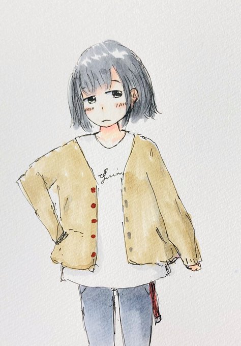 #イラスト #オリキャラ 苫田 実湖 (とまた みこ) 「 てれ。」