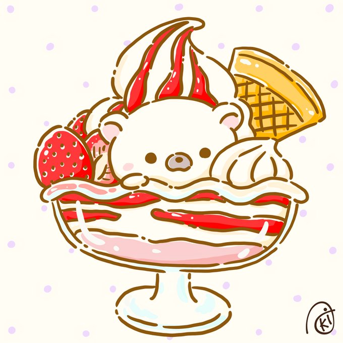 33 172 いちごサンデー #イラスト #お絵描き #シロクマ #ホッキョクグマ 23/07/21 08:55