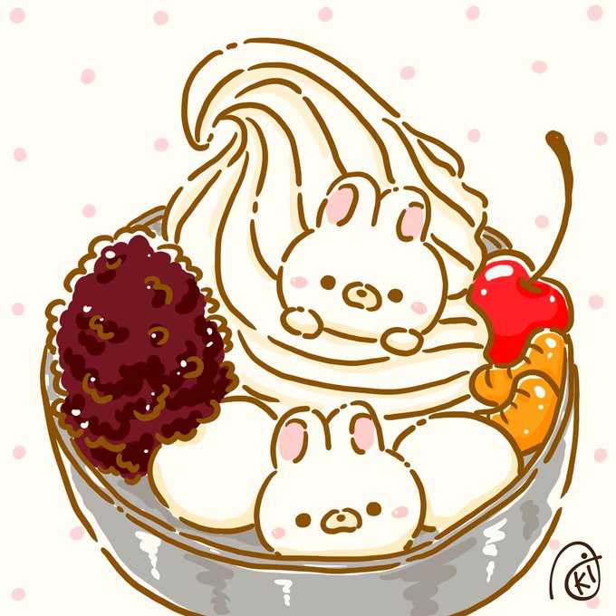 白玉クリームあんみつ! #イラスト #お絵描き #うさぎ