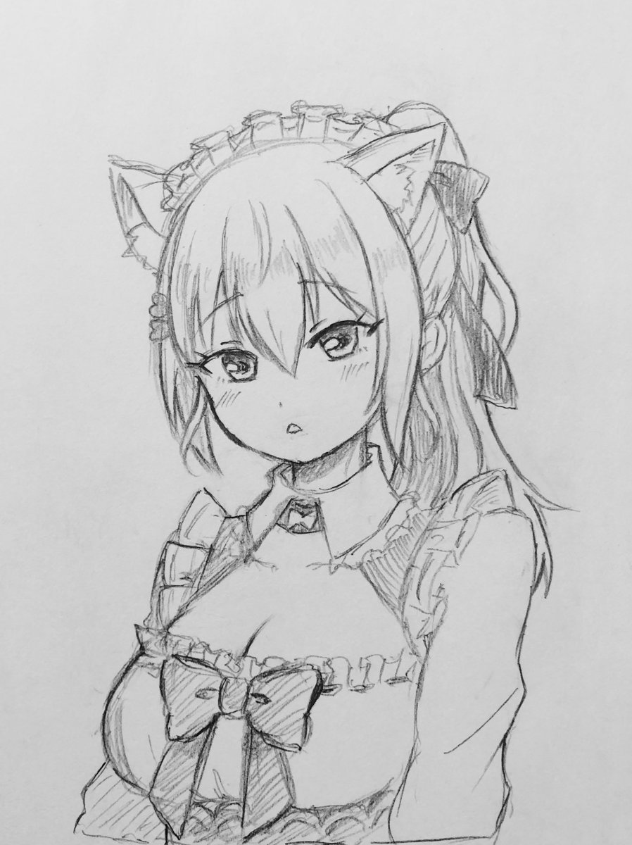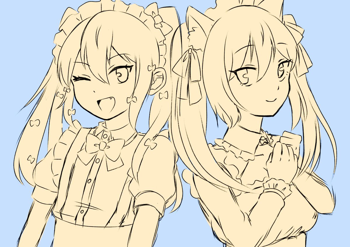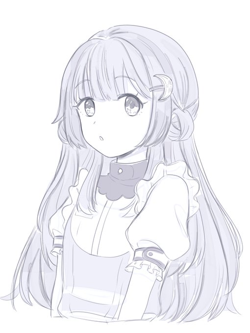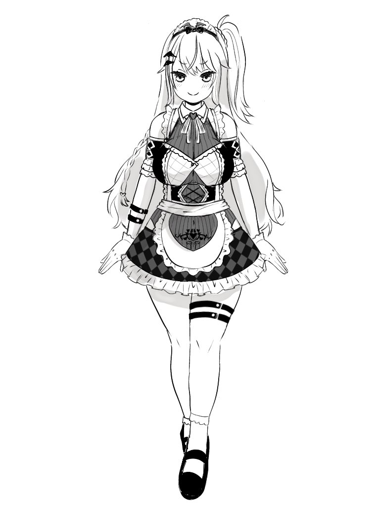 今の制服衣装デザインを基に、メイド服を考えてみました! どうしてもお腹見せたかった結果、斬新なエプロンの形になりました笑 お腹のところはコルセットで〜、インナーは透け素材で〜、ここは菱形に〜などなど!楽しく妄想しながら描きました🥳 #夢乃リリス新衣装予想 #夢の中絵