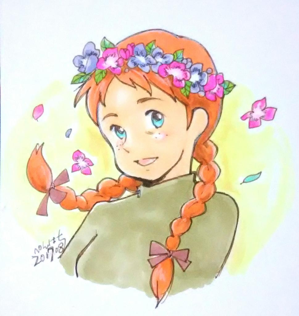7 25 お題①「赤毛のアン」 #名劇版深夜の真剣お絵描き60分一本勝負 17/08/20 23:07