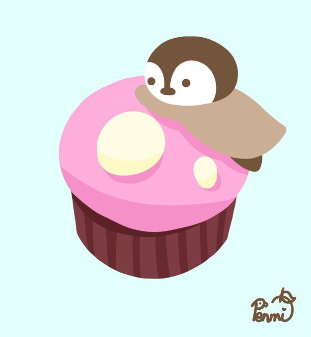 🧁🐧 #絵描きさんと繋がりたい #イラスト #ペンギン #カップケーキ