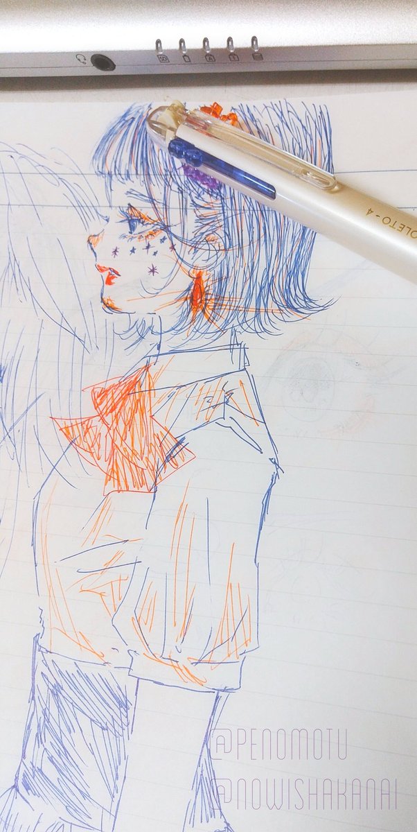 めっちゃいい感じに落書きできた。 Zoom授業は真面目に受けてたら寝ます。 #絵描きさんと繫がりたい #イラスト好きな人と繋がりたい #落書き #アナログイラスト #アナログ絵描きさんと繋がりたい