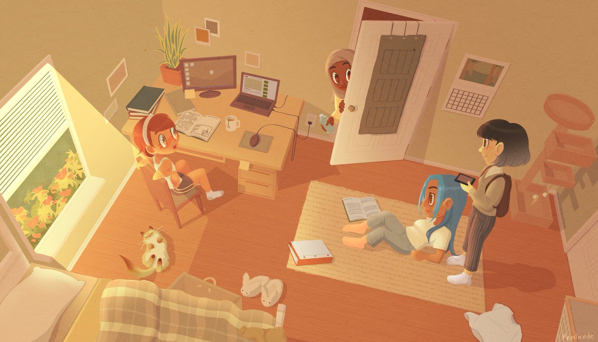 hiii #BiCreators!! i’m a nonBInary artist and i love drawing with fun colors and making warm and comforting art 💚✨