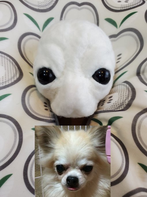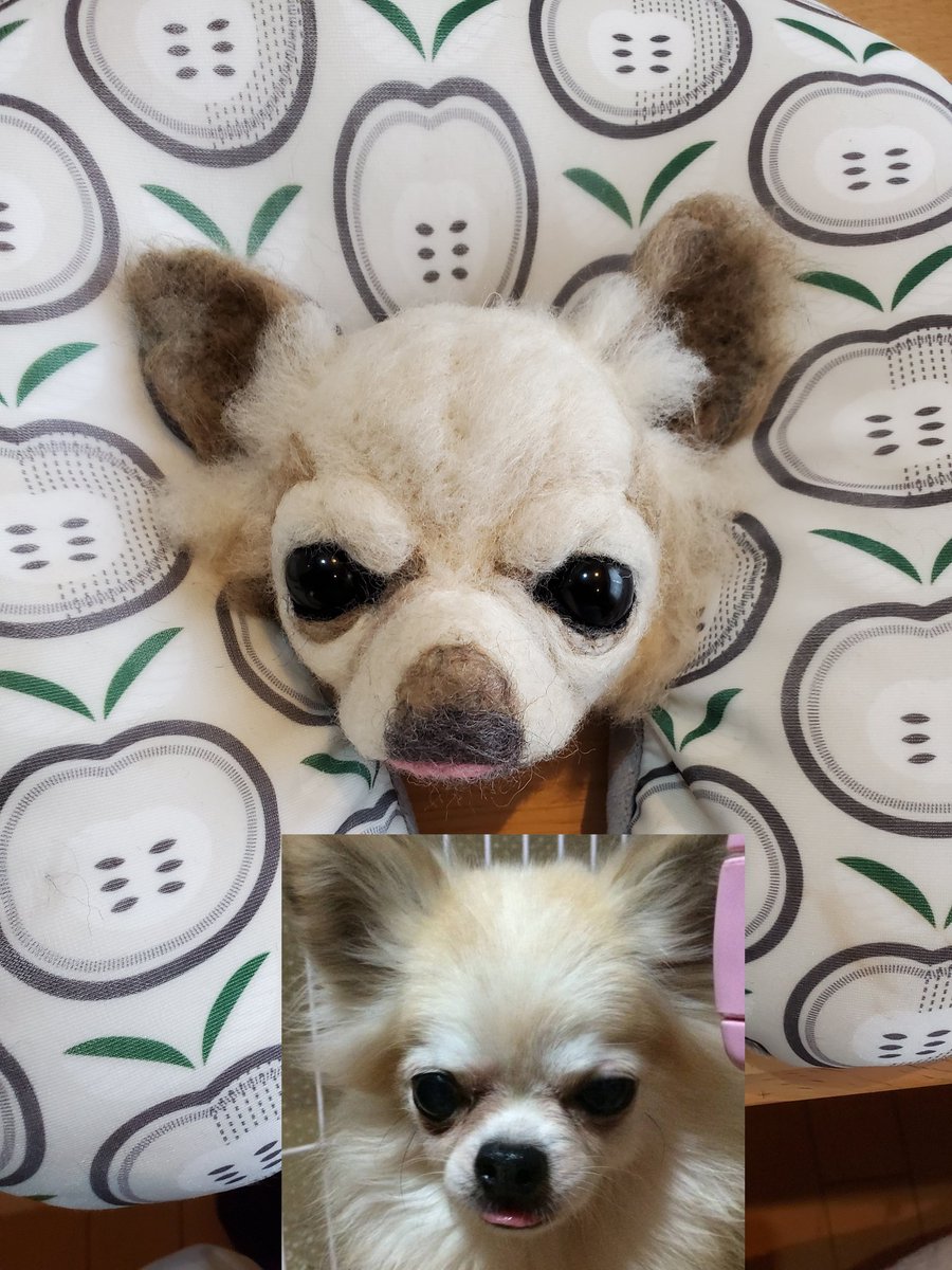 顔押しつぶしたり鼻押しつぶしたりしたらちょっと良くなったんちゃう? ごめんなさいもうゴールするね! #羊毛フェルト #チワワ #ハンドメイド