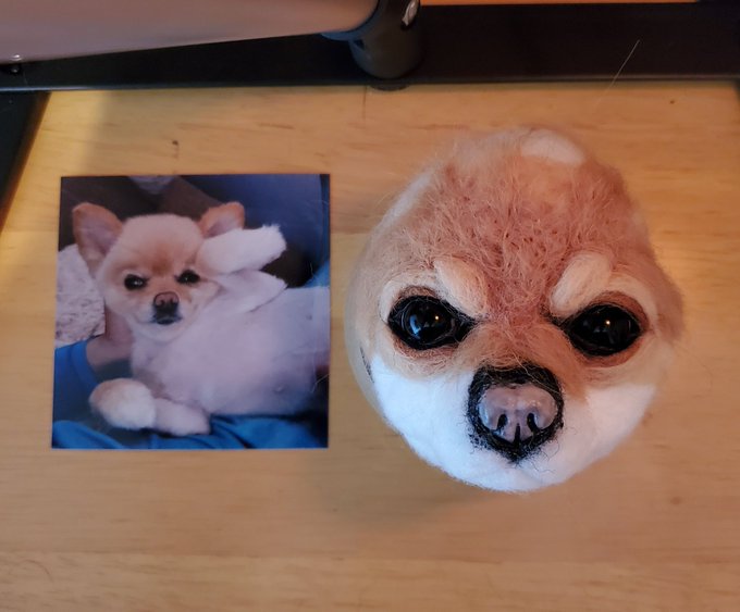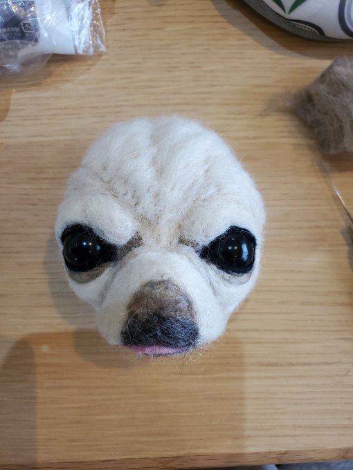 1 31 顔押しつぶしたり鼻押しつぶしたりしたらちょっと良くなったんちゃう? ごめんなさいもうゴールするね! #羊毛フェルト #チワワ #ハンドメイド 21/06/03 09:28