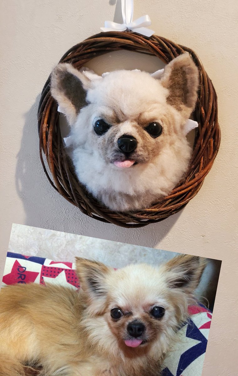 0 15 壁紙を突き破ってる感じのデザインにしてます(生首だとなんかかわいそうなので) #ハンドメイド #羊毛フェルト #チワワ 21/06/04 07:05