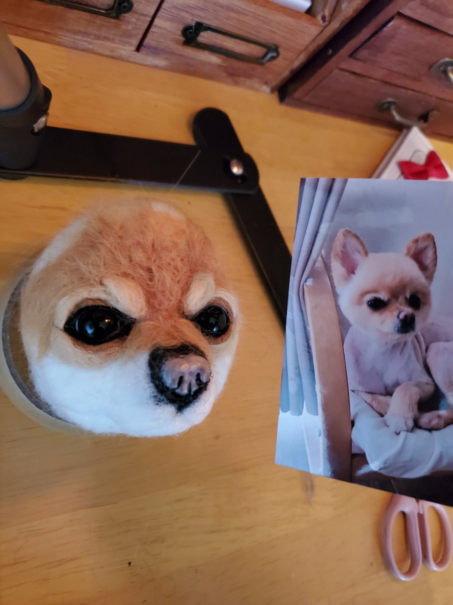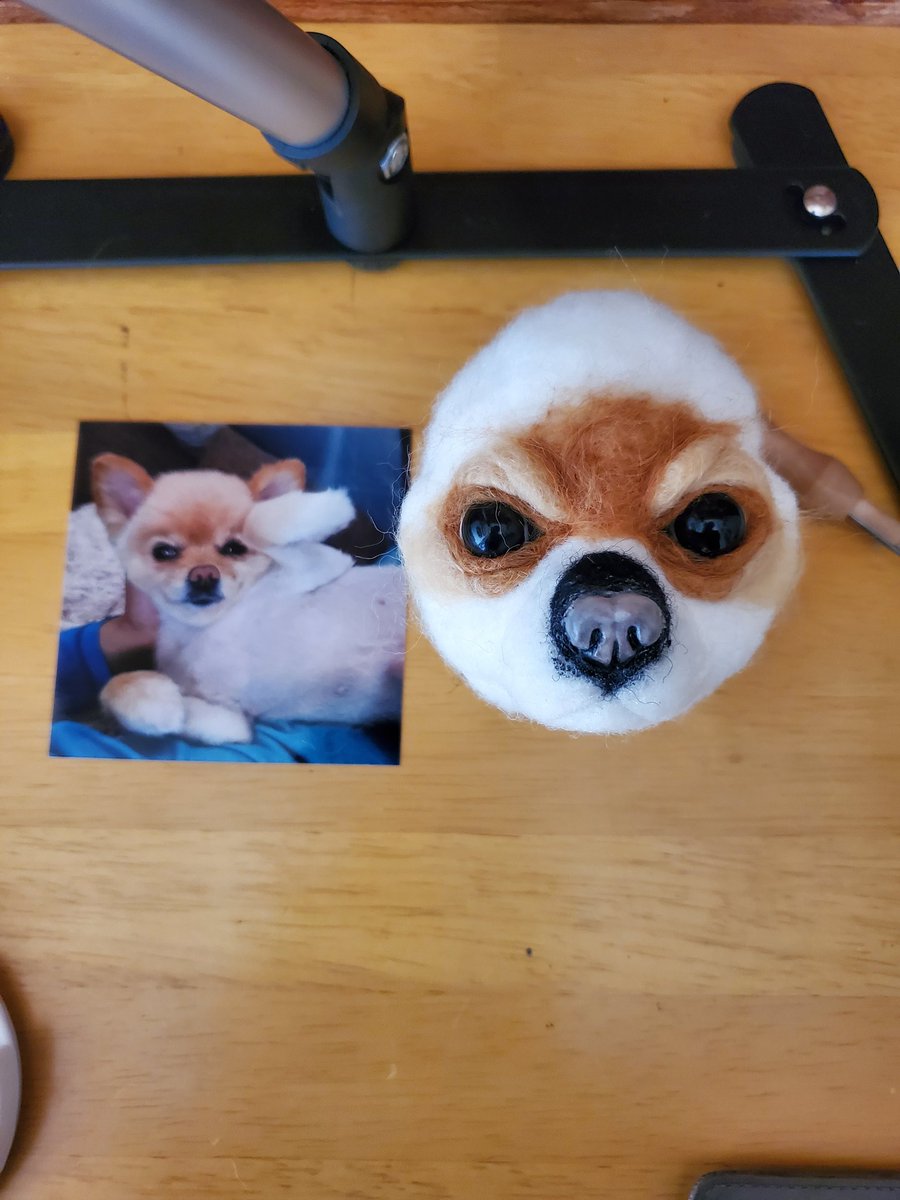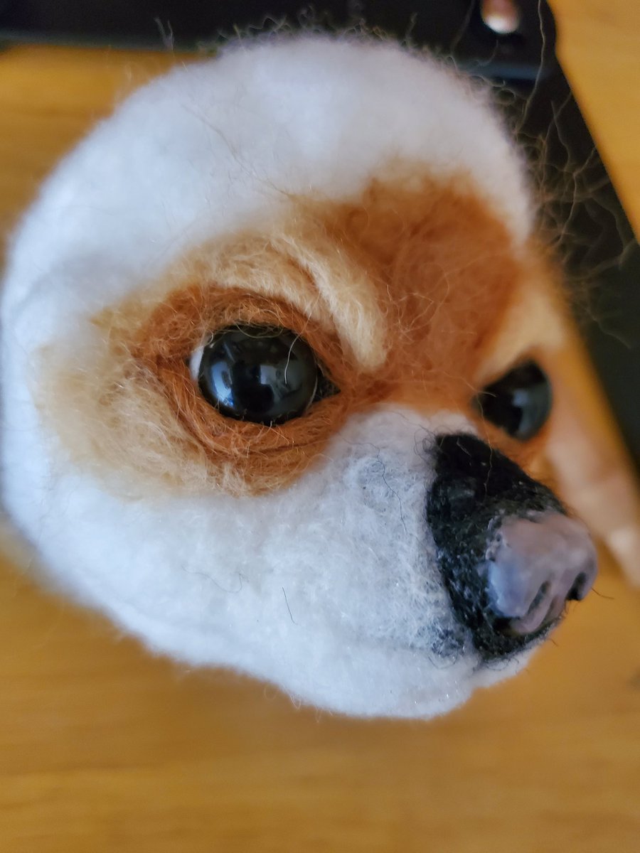 #朝活 #羊毛フェルト #ポメラニアン 目尻の肉を少し足しました もうちょっと色味を付け足していきます