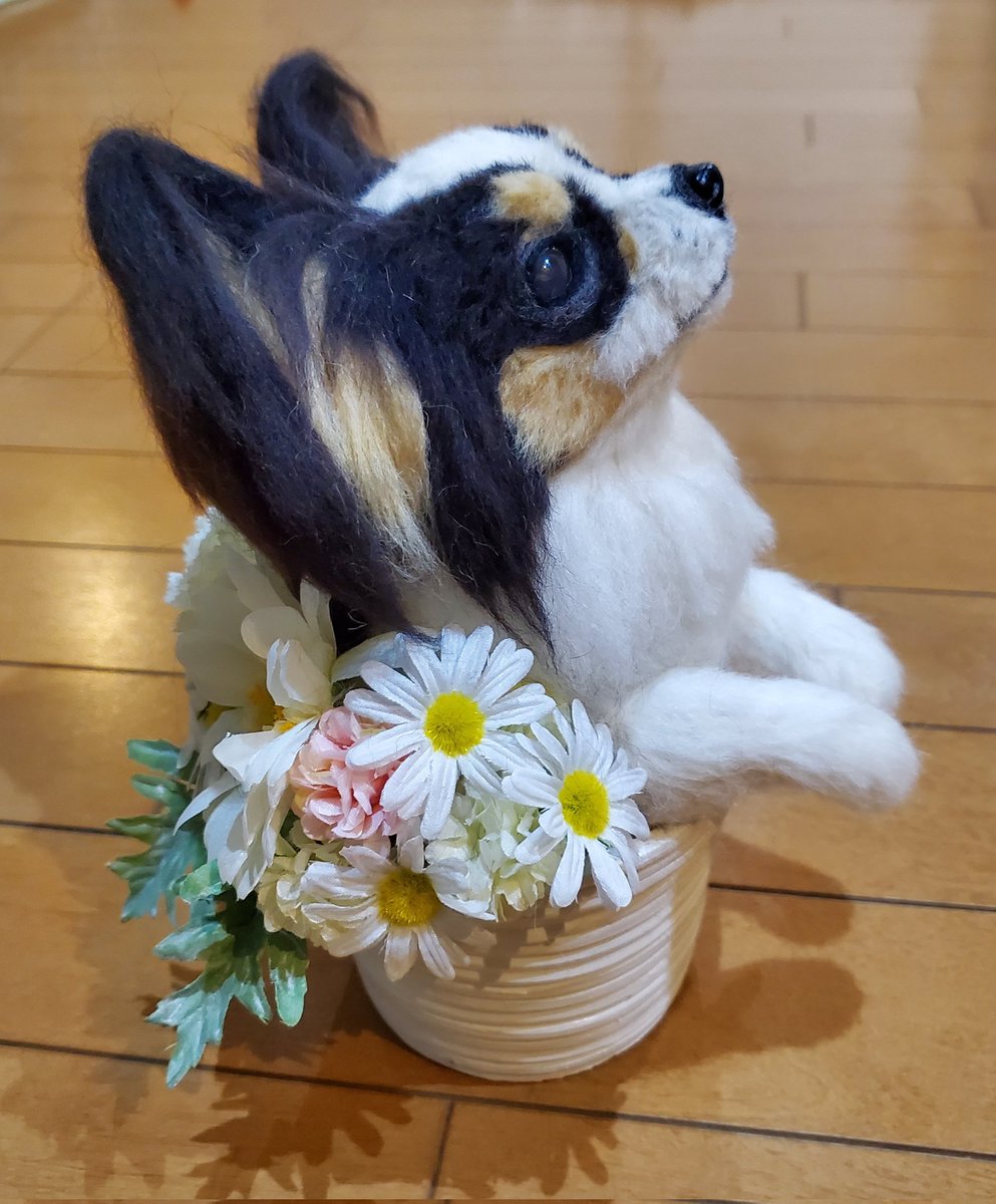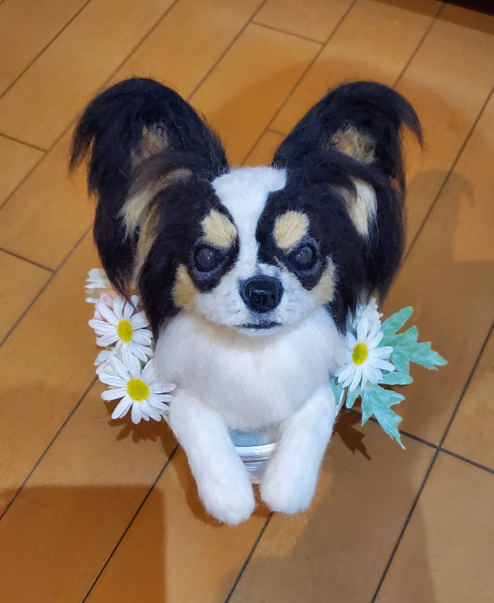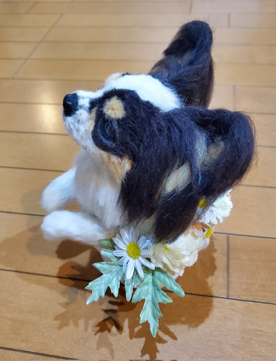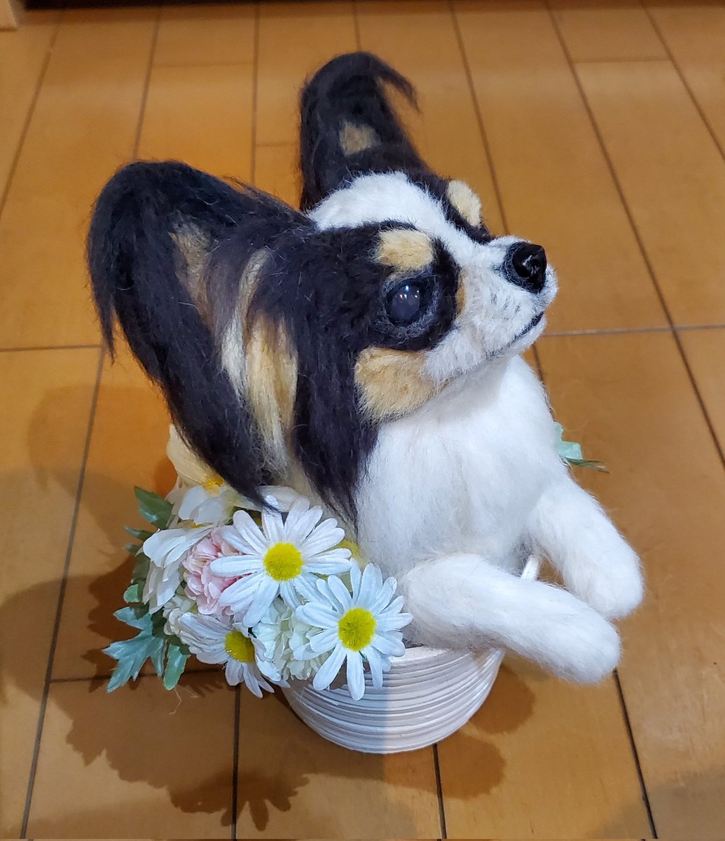 一応完成しました! 時間制限あって凝れませんでしたが💦💦💦 まあまあ似たかなと思います! #羊毛フェルト #パピヨン #ハンドメイド