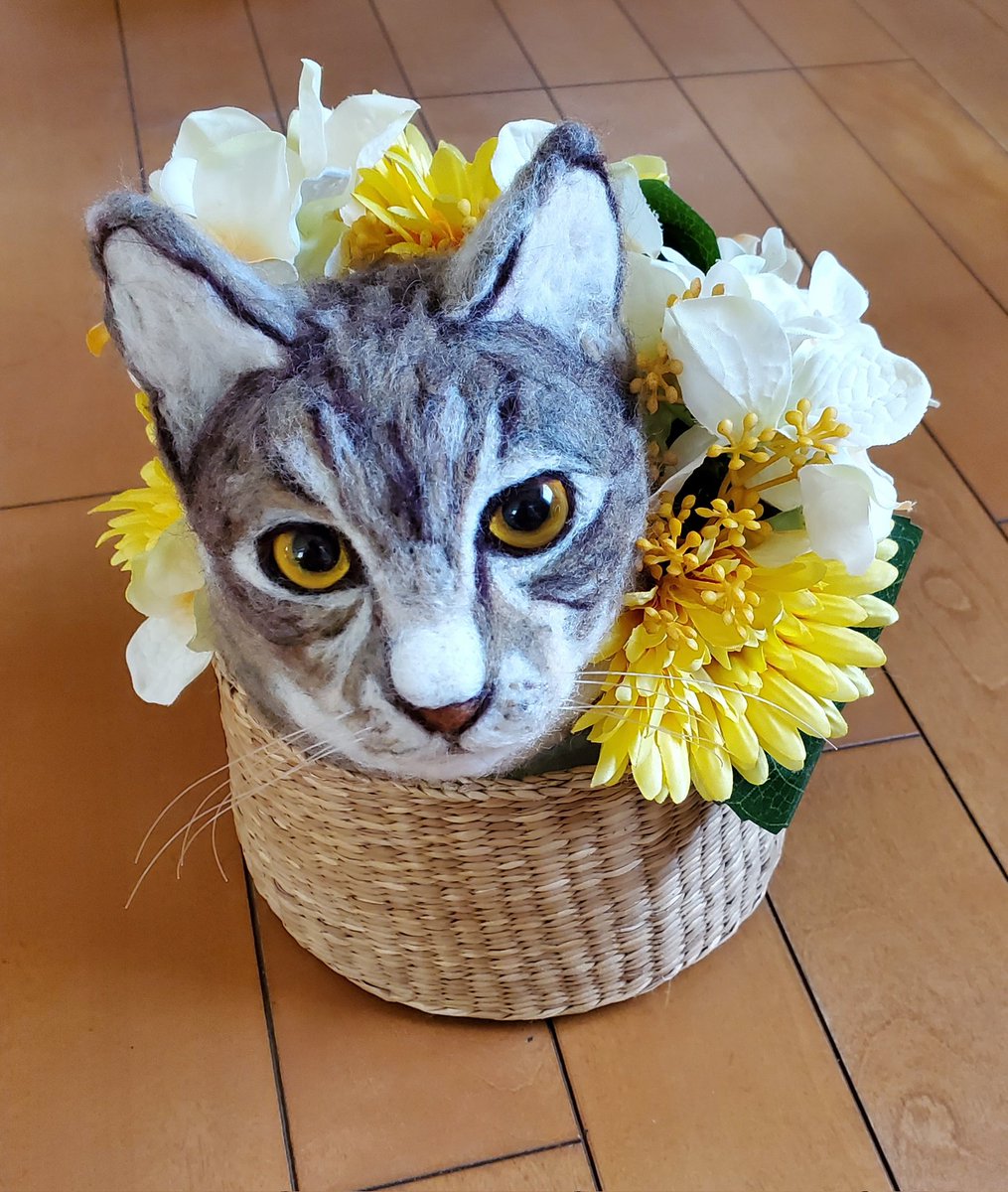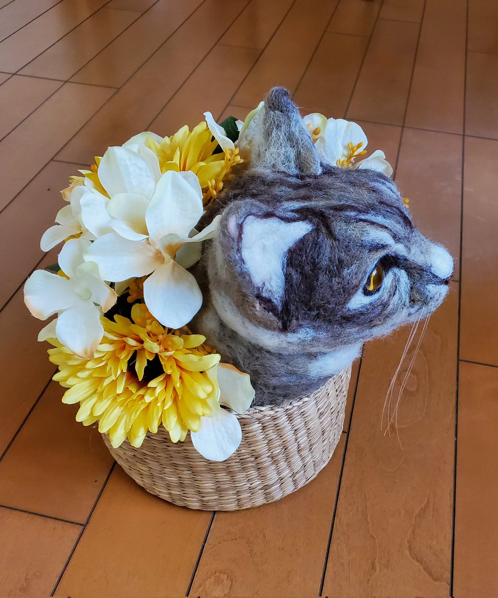 4 9 新作猫ちゃん 植毛は諦めましたがまあまあ猫に見えるかな…… 後頭部が気に入ってます #羊毛フェルト #猫 #キジトラ #ハンドメイド 23/05/27 11:05