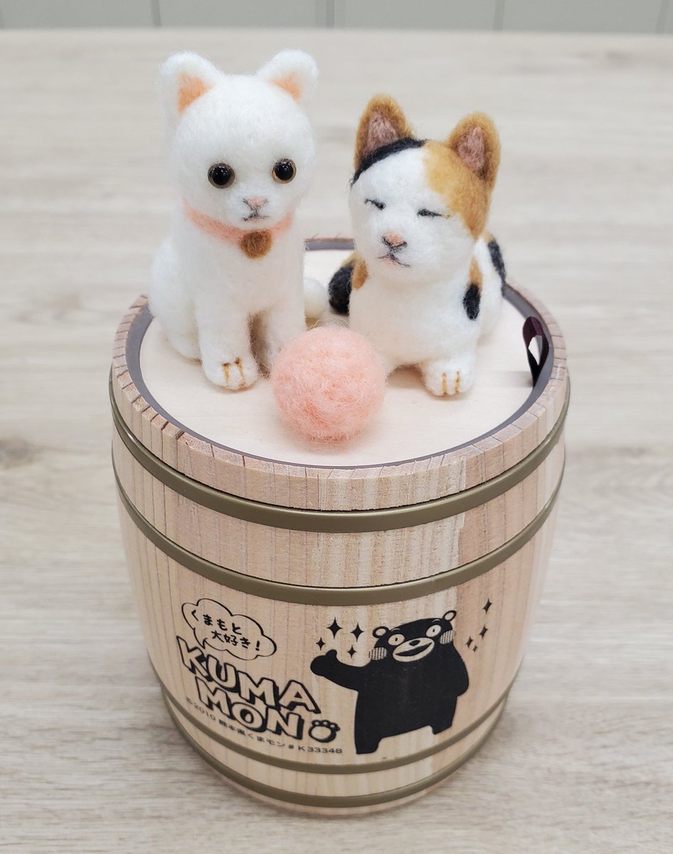 0 2 キットのネコちゃんをくまモンの樽につけました #羊毛フェルト #ハンドメイド 23/06/07 19:15